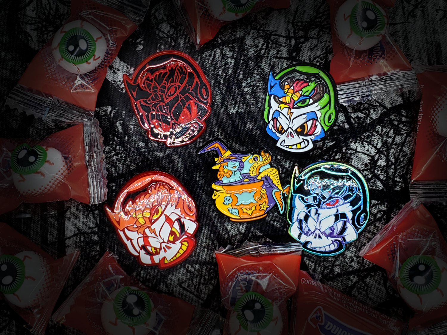 The candy Buckets as a pin series are steeped in Halloween. They're inspired bythe classic McD's plastic Halloween candy buckets. You'd fill it and then head home to look over your treasure and trade it with your crew.